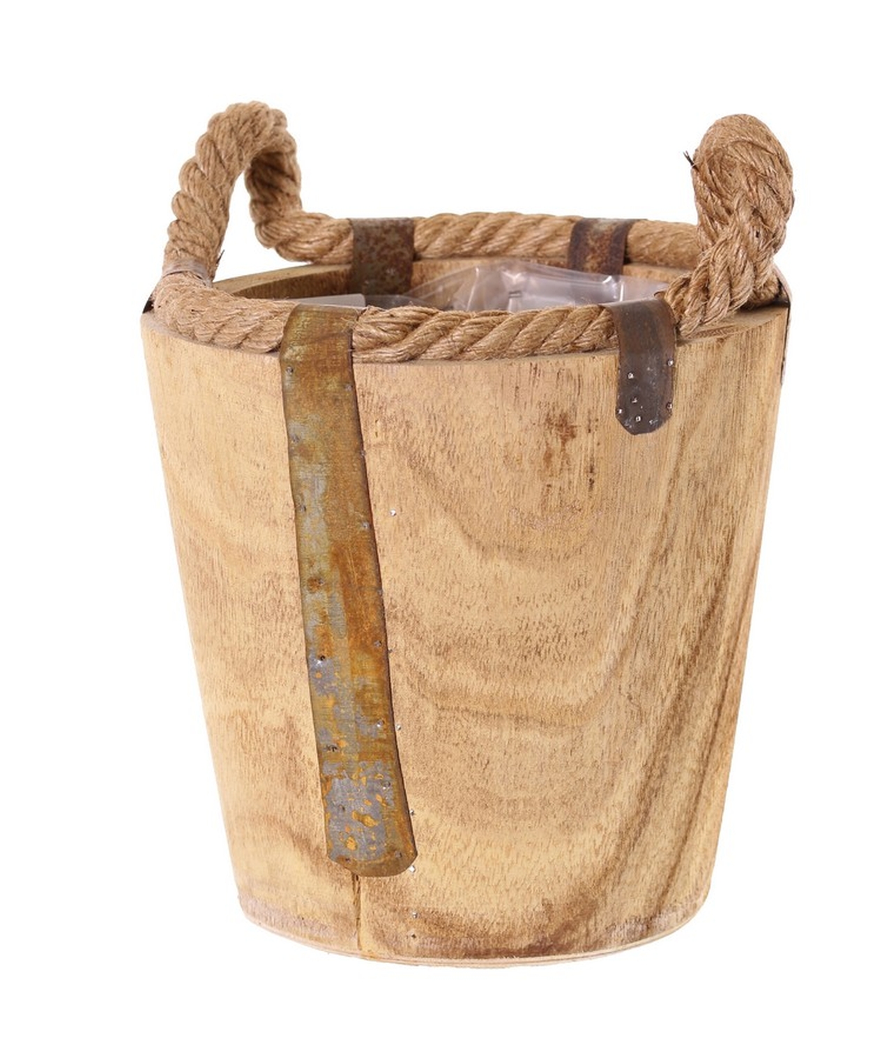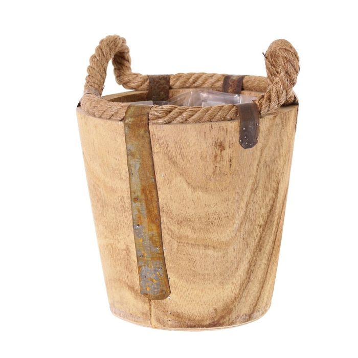 Wooden planter DABIH with rope handles, brown, 8"/19cm, Ø8"/20cm